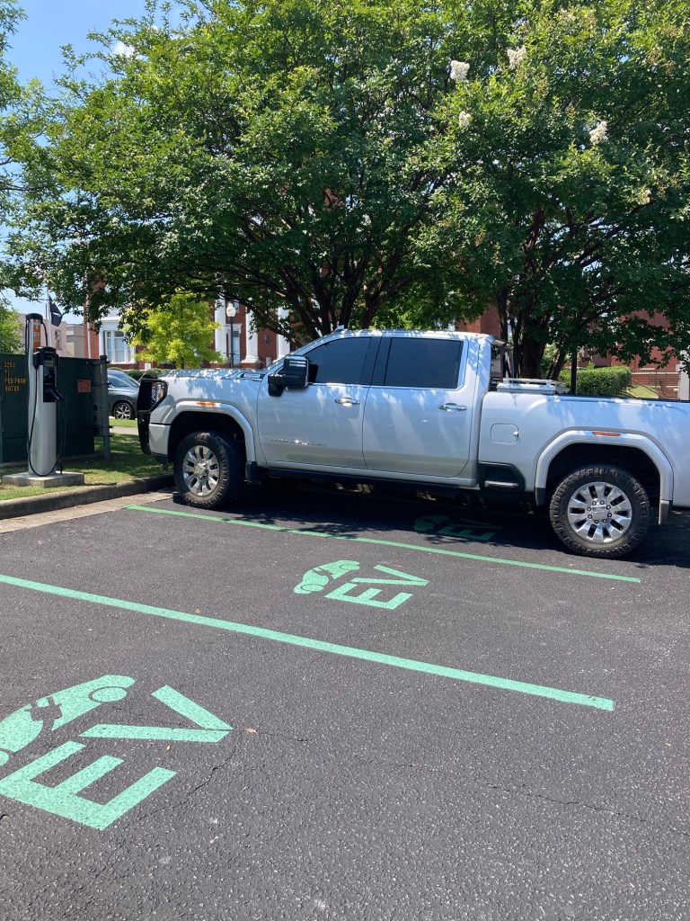 When I arrived, a large gas-powered truck was parked in the shadiest EV spot.